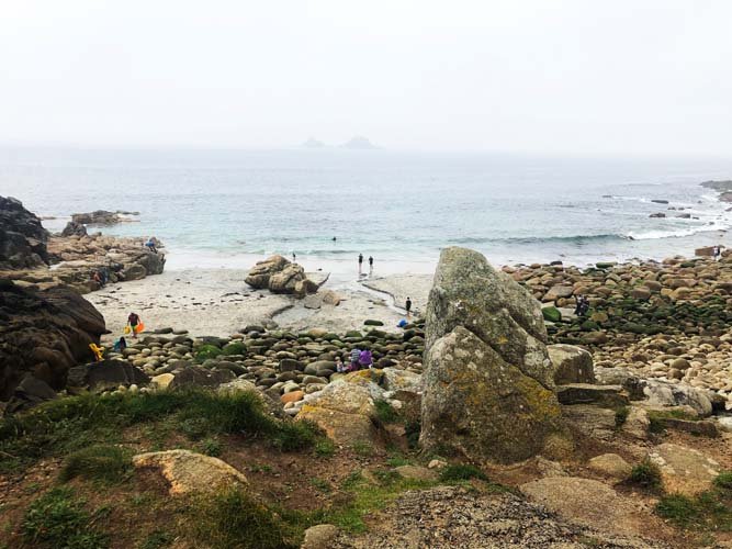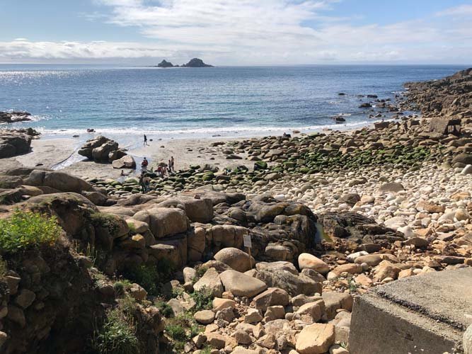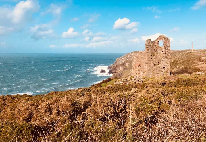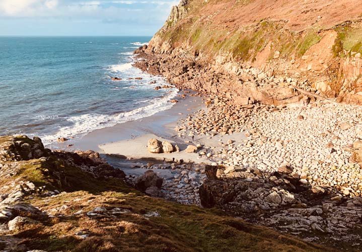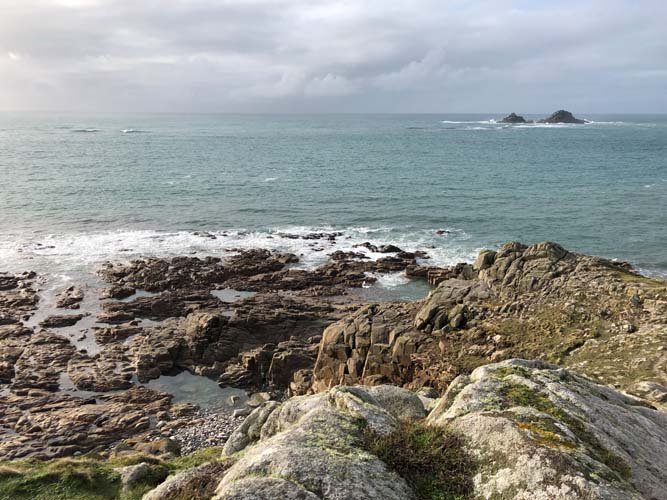 If you turn right at Cape Cornwall along the South West Coast Path it takes you along the rugged paths of the Granite Coast past Kenidjack Castle, the Crown Mines to the remote, gleaming lighthouse at Pendeen Watch then onto Gurnards Head and Zennor to St Ives. Left from the Cape , where the Atlantic currents split, takes in part of Cornwall’s oldest mining district. The path is a mixture of easy open walking along the high cliff tops and short, rough ascents and descents, to the sweep of golden sand at Sennen Cove and then to Lands End.
